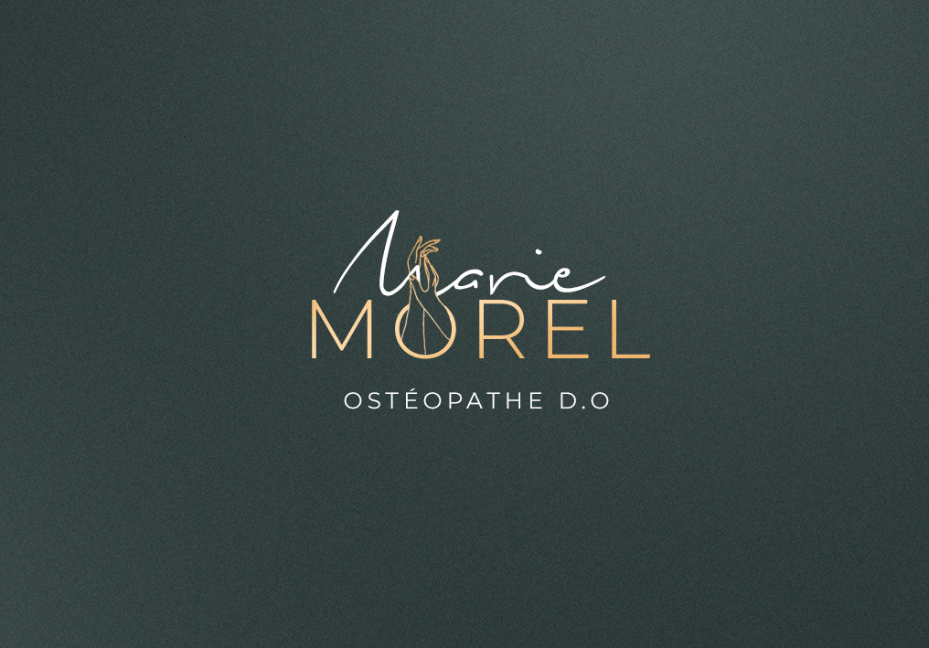 Réalisations de l'identité visuelle de Marie Morel, ostéopathe pour l'ouverture de son cabinet à Poissy.